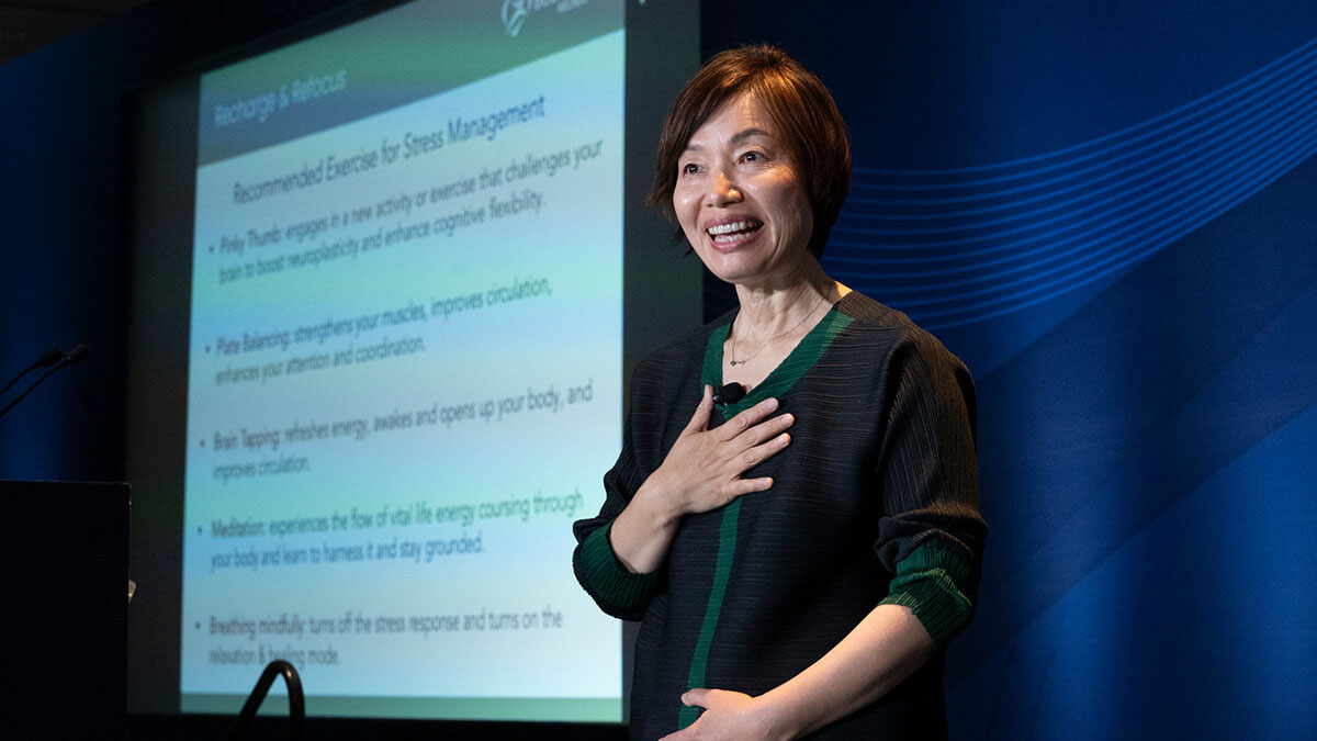 Wellness keynotes, breakout sessions, interactive activations, and leadership workshops — designed for onsite teams, corporate retreats, and conferences.